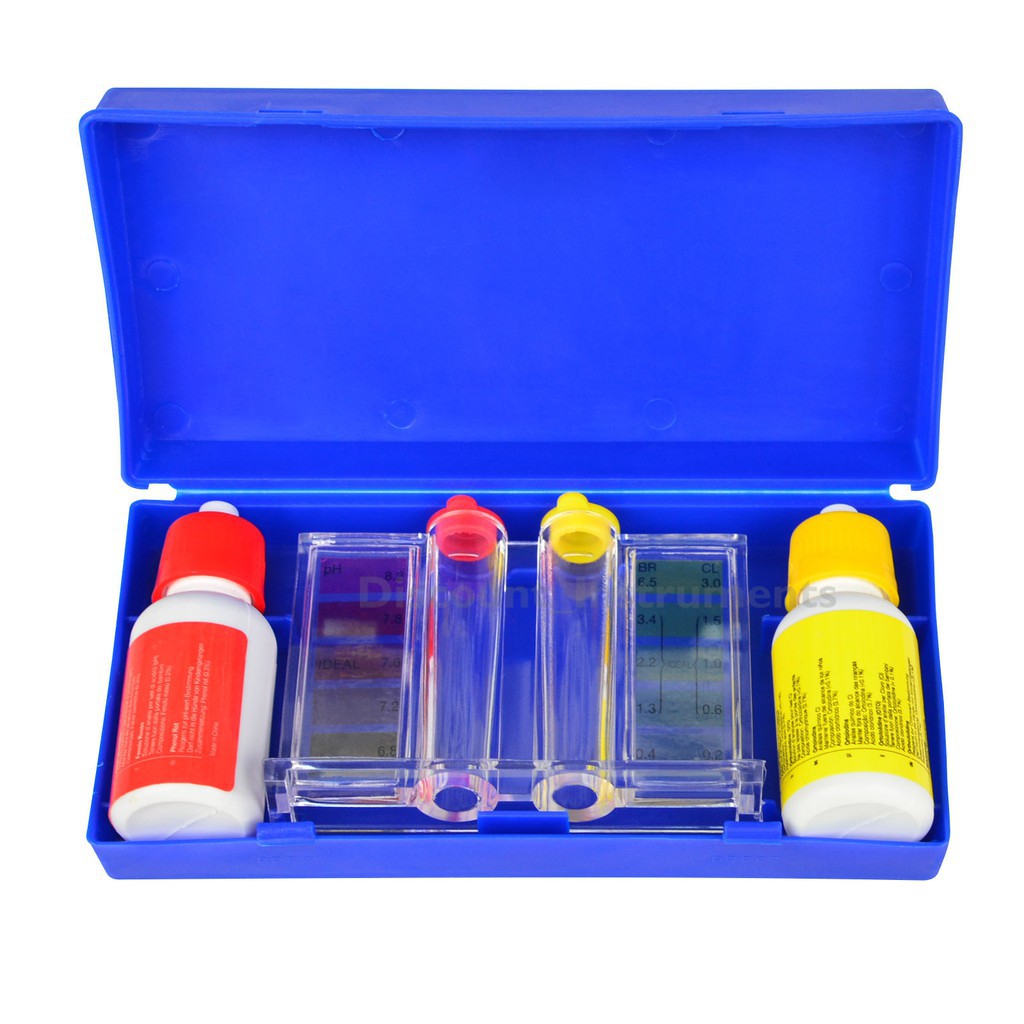 Đầu tiên chúng ta cần chuẩn bị 1 bộ đo nồng độ clo dư chuyên dụng: hộp thử clo 2 trong 1 Midas – Đức.
